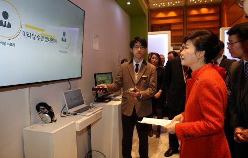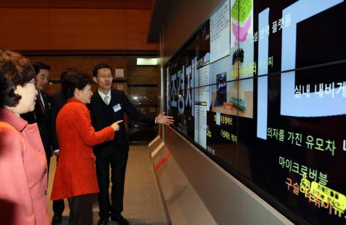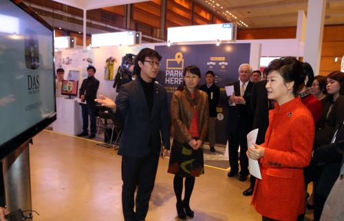 박근혜 대통령이 12일 서울 삼성동 코엑스에서 열린 창조경제박람회에 참석, 전시관을 둘러보고 있다.