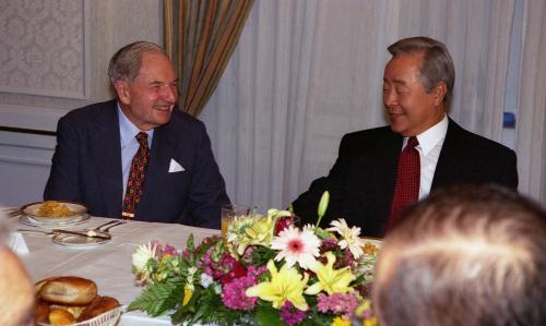 참석자 : 김영삼 대통령 인물상세정보 : 김영삼 대통령(우) 김영삼 대통령이 미국 저명인사과와 조찬을 하였다.